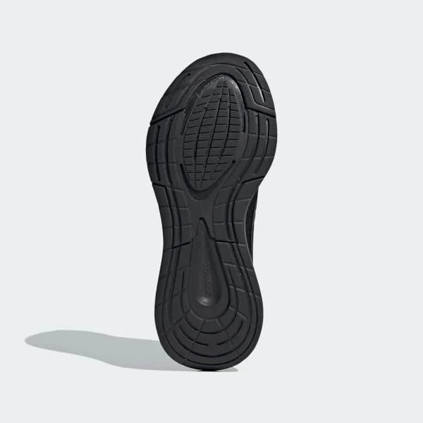 The Adidas EQ21 Run Shoes in Triple Black are designed for women who seek comfort and style during their runs. These shoes feature an engineered mesh upper that ensures breathability, keeping your feet cool during long runs. The Bounce midsole provides lightweight cushioning, offering a responsive and comfortable feel with every step. The shoe also incorporates Geofit technology, which enhances the fit and comfort with padded support around the collar. Made with sustainability in mind, at least 50% of the upper material is crafted from recycled content, contributing to Adidas' efforts to reduce plastic waste.