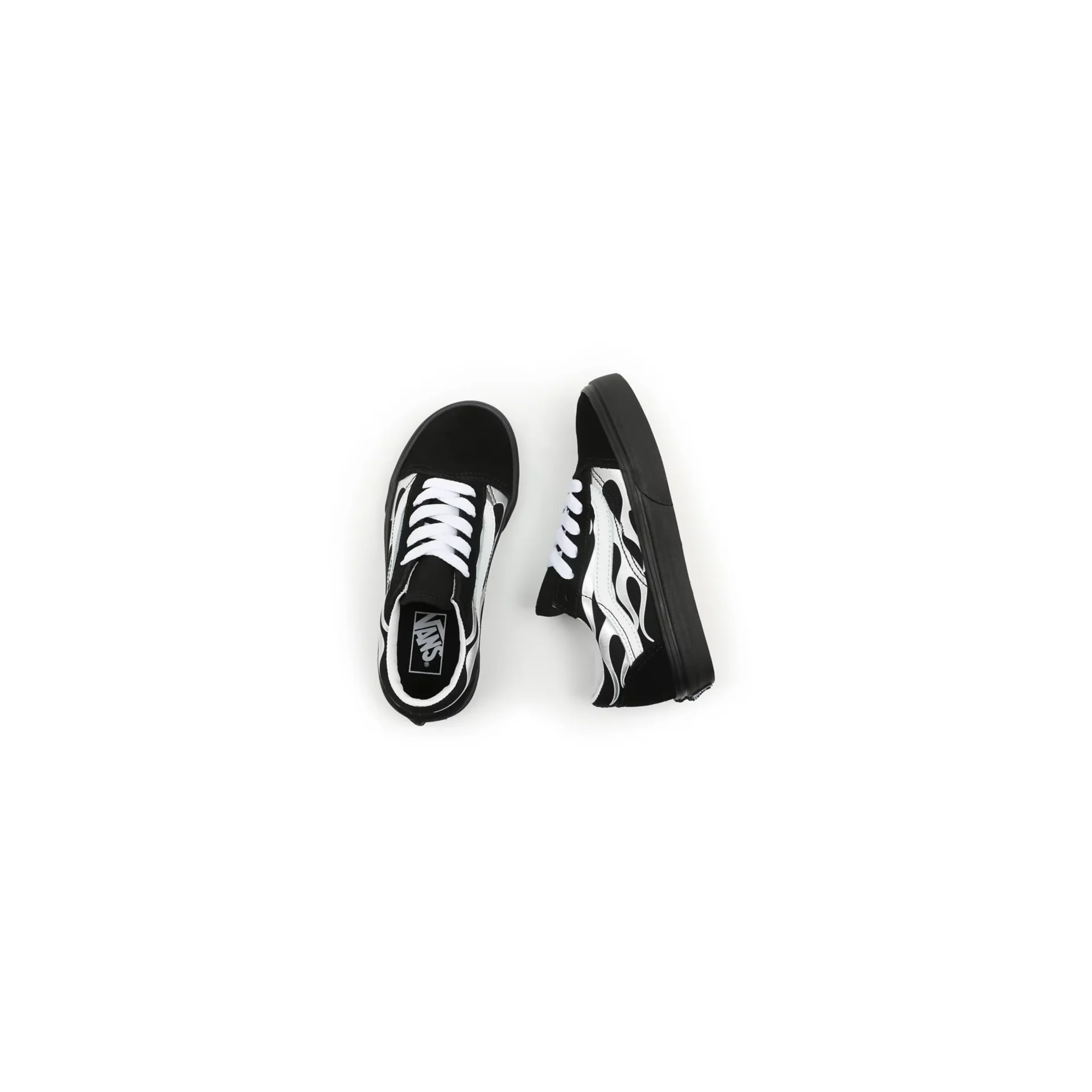 Featuring a tonal metallic flame print, the Metallic Flame Kids Old Skool pays homage to our heritage while ensuring that this low top, lace-up shoe remains as iconic as ever. It also includes durable suede and canvas uppers, re-enforced toe caps, supportive padded collars, and signature rubber waffle outsoles.
